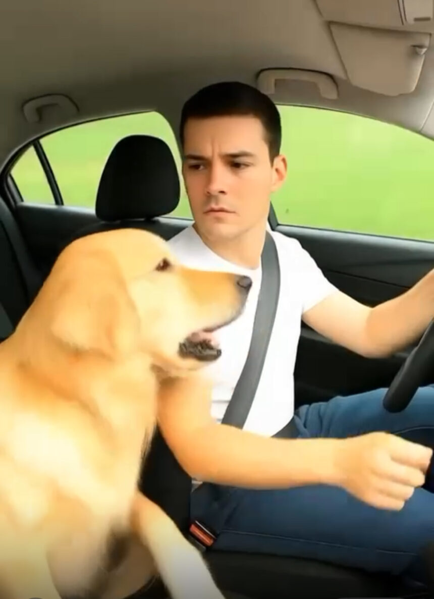 The husband is behind the wheel. His wife suddenly looks across at him and speaks in a clear voice. “I…