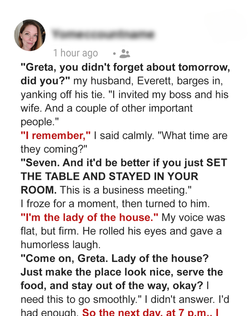 When Greta is told to serve dinner and disappear during her husband’s big work meeting, something inside her shifts. After…
