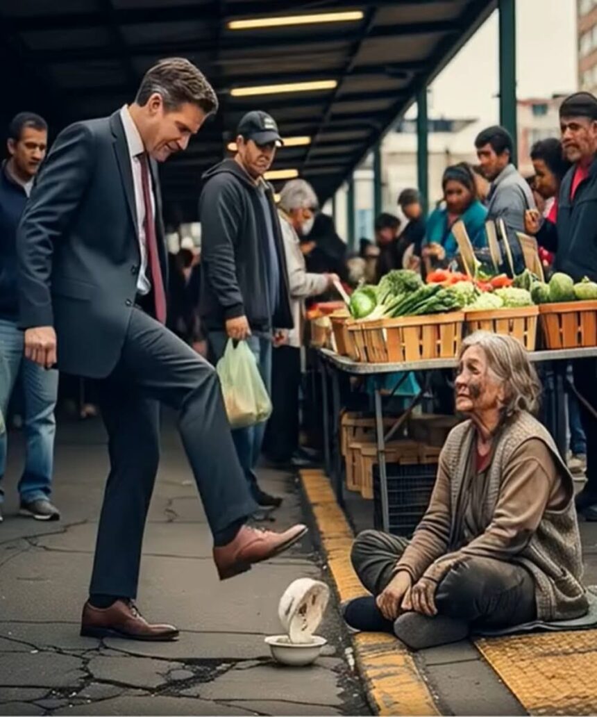 Near the entrance, Daniel’s sharp eyes fell on a frail figure seated against a lamppost. An elderly woman sat there, bundled in tattered clothes, her gray-streaked hair unkempt, her hands trembling slightly as she reached out to passersby. “Please… something for food,” she whispered softly.