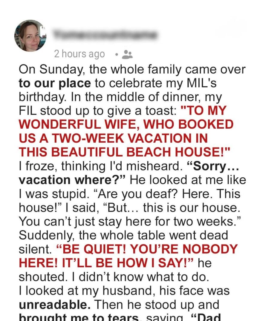 At My MIL’s Birthday Dinner at Our House, My FIL Snapped, ‘Be Quiet! You’re Nobody Here!’ – My Husband’s Response Left Me in Tears