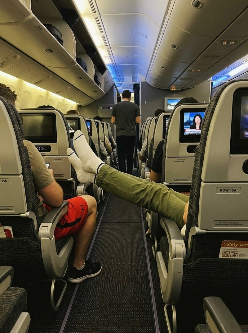 A passenger was blocking the aisle with her smelly foot, but I managed to teach her a lesson — and the whole cabin cheered me