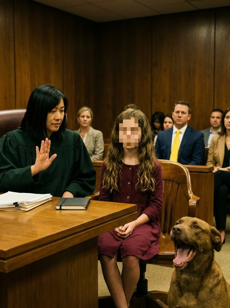 She gave her dog a secret signal—and when the courtroom finally heard her voice, the shocking truth about her father was revealed. ‘Moose knows,’ she whispered, ‘he knows who’s dangerous.