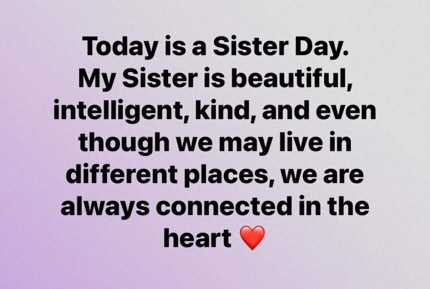 Today is a Sister Day. My Sister is beautiful, intelligent, kind, and even though we may live in different places, we are always connected in the heart