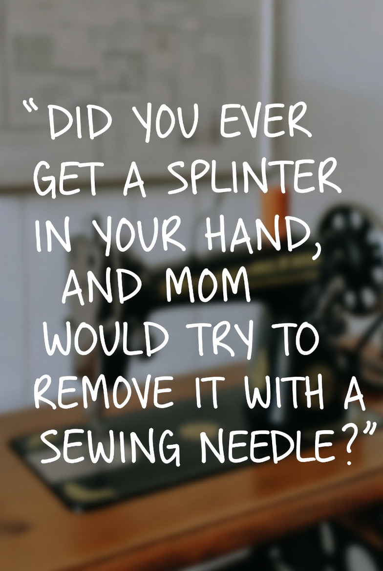DID YOU EVER GET A SPLINTER IN YOUR HAND, AND MOM WOULD TRY TO REMOVE IT WITH A SEWING NEEDLE?!