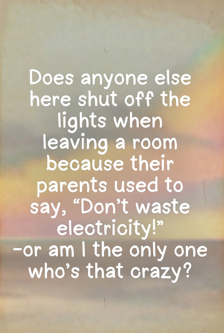 Does anyone else here shut off the lights when leaving a room because their parents used to say, “Don’t waste electricity!”-or am I the only one who’s that crazy?