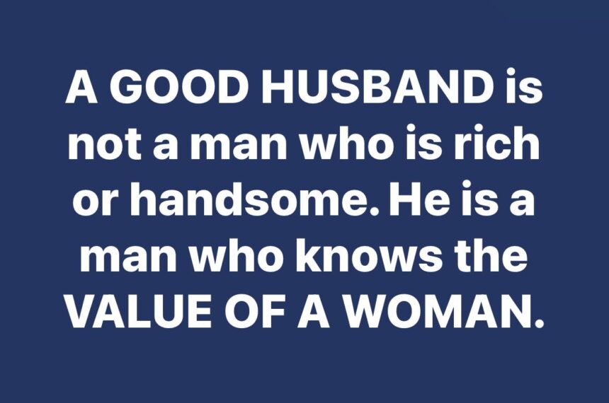 A GOOD HUSBAND is not a man who is rich or handsome. He is a man who knows the VALUE OF A WOMAN.