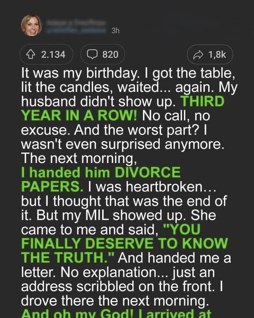 On my birthday, I sat alone at our favorite corner booth again—candle flickering, wine half gone, and the seat across from me empty. For the third year in a row, Mark didn’t show. I’d waited through excuses, late arrivals, and promises.