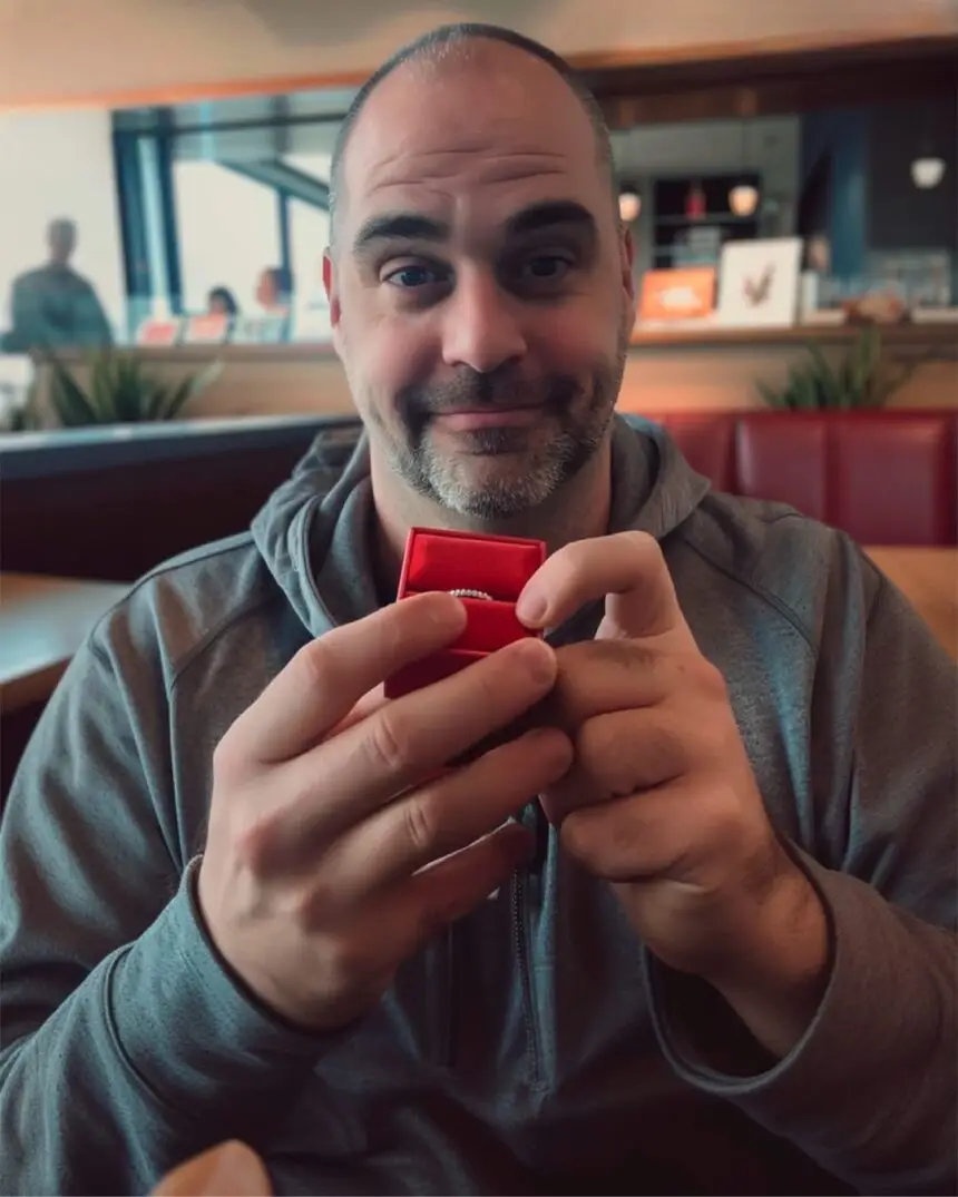 And guess what? That very night, he showed up at my door with flowers (his first ever), a bottle of wine (cheap, but still), and most shocking of all—a ring. I opened the door, and there he was, standing awkwardly on my tiny welcome mat, holding up a small velvet box.