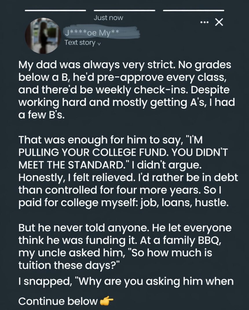 So I paid for college myself—job, loans, hustle. But he never told anyone. He let everyone think he was funding it.