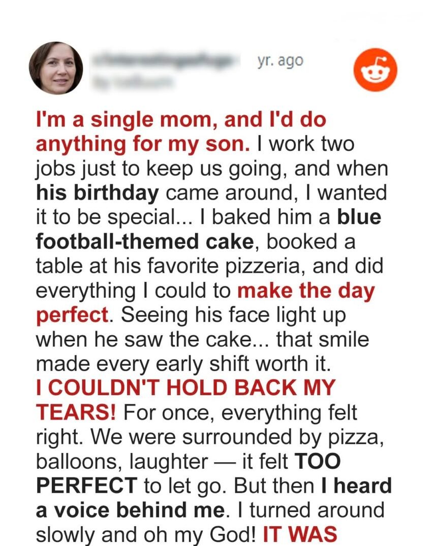 I worked two jobs to give my son a day he’d never forget. His favorite pizzeria, a surprise cake, a warm hug of oregano in the air. But just as the candles were lit, a stranger’s voice cut through the joy—and turned our celebration into something I never saw coming.