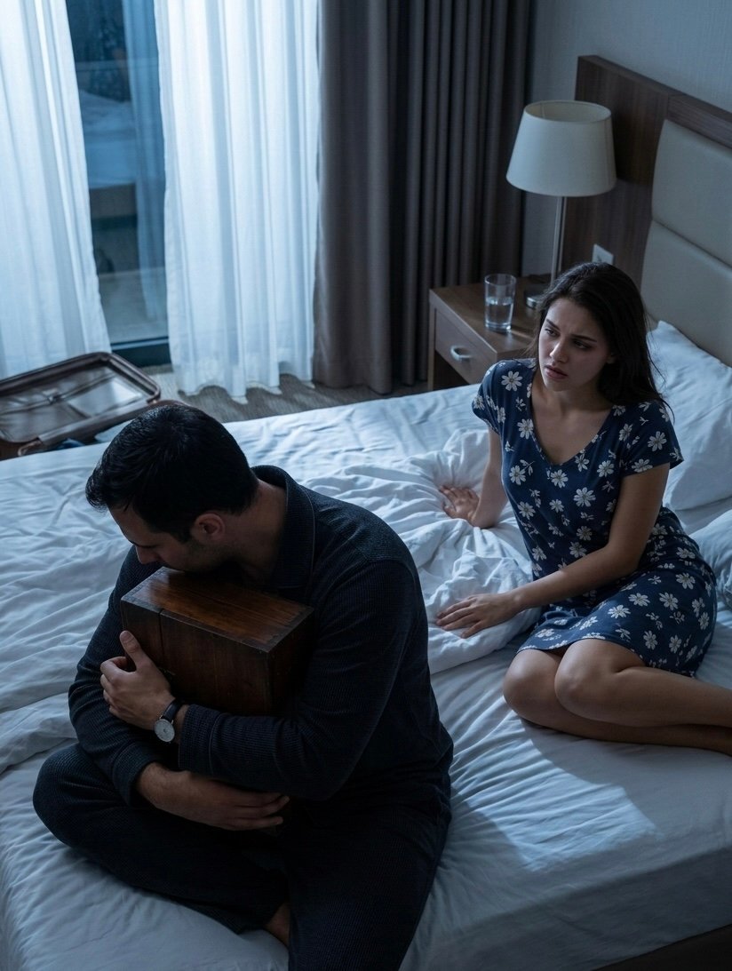 Initially, I believed he was cradling the Bible from the nightstand—odd, but harmless. After that, when my eyes adjusted, I realized it was a box. A dark, polished wooden box about the size of a shoebox.