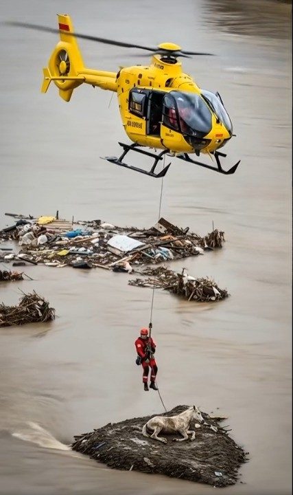 One recent rescue in particular has captured global attention — the daring helicopter mission to save a stranded horse from fast-rising, deadly floodwaters. This extraordinary act of courage not only saved an innocent life but also served as a reminder of the power of human compassion in the face of disaster. The Dire Situation: A Horse Stranded in a Flood Zone