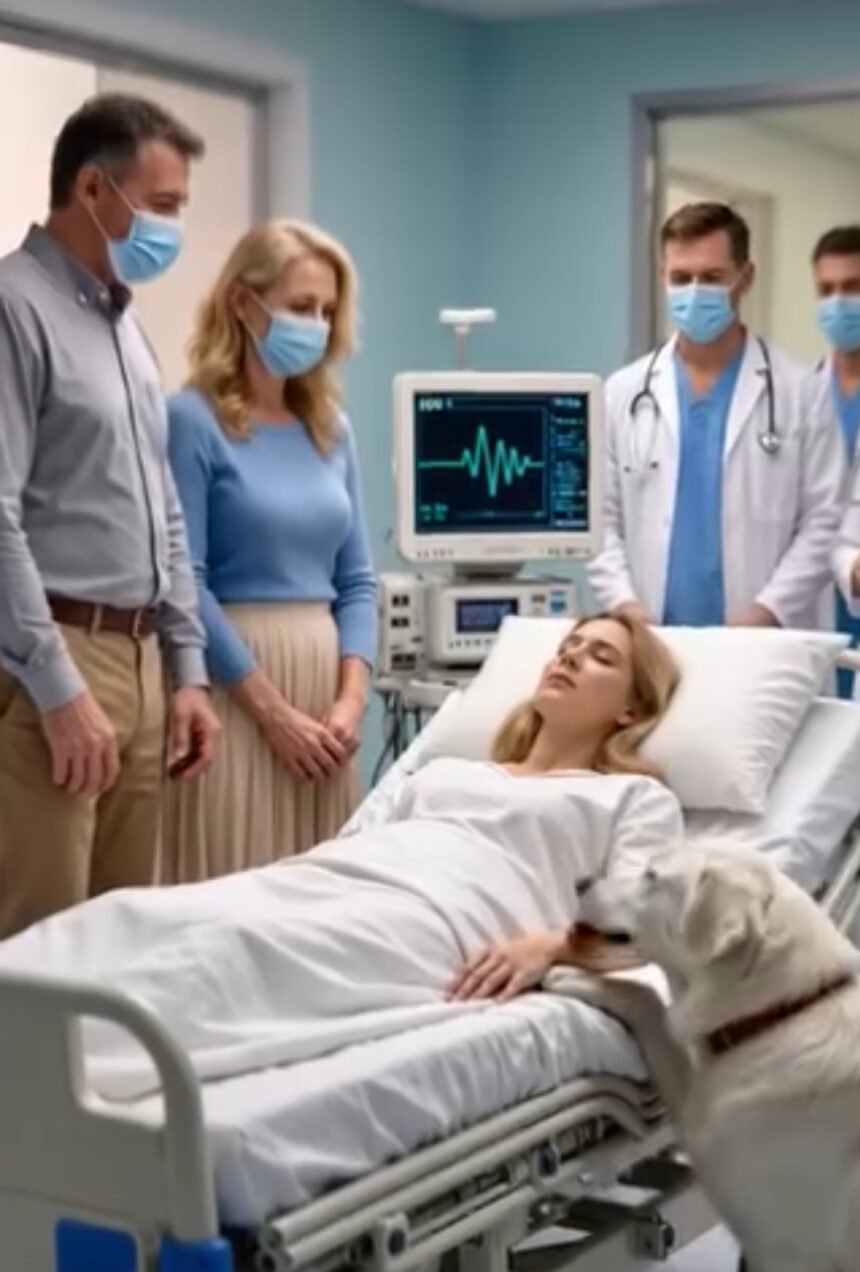 Their daughter had been in a coma for months, and every doctor repeated the same heavy truth: there was no way forward. When Peter and Olivia finally gathered the strength to say goodbye, they held each other’s hands like people at the edge of a cliff. Then a massive white dog burst through the door, bounded to the bed, and began licking the girl’s hand.