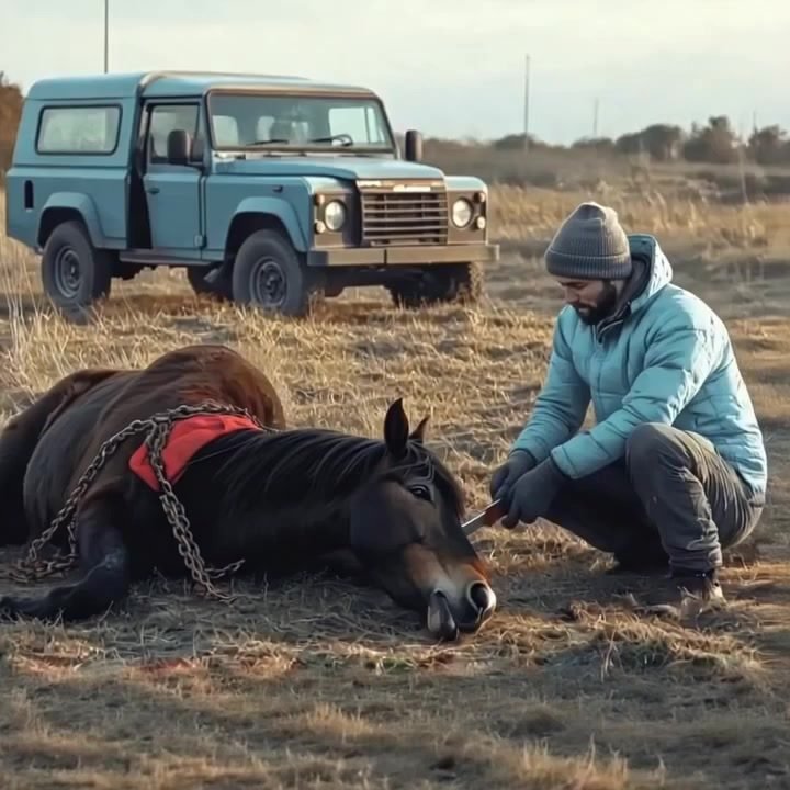 He knew he could not turn away—not from this creature, not from the suffering imposed by human ignorance or neglect. Approaching cautiously, he kept his voice soft, his gestures deliberate. The stallion, wary but too weakened to resist much, watched every move.