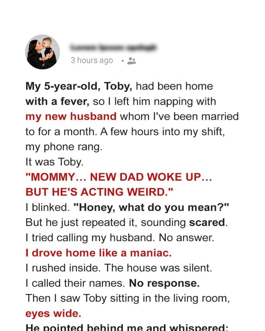 “Mommy,” he said softly, “new dad woke up… but he’s acting weird.”